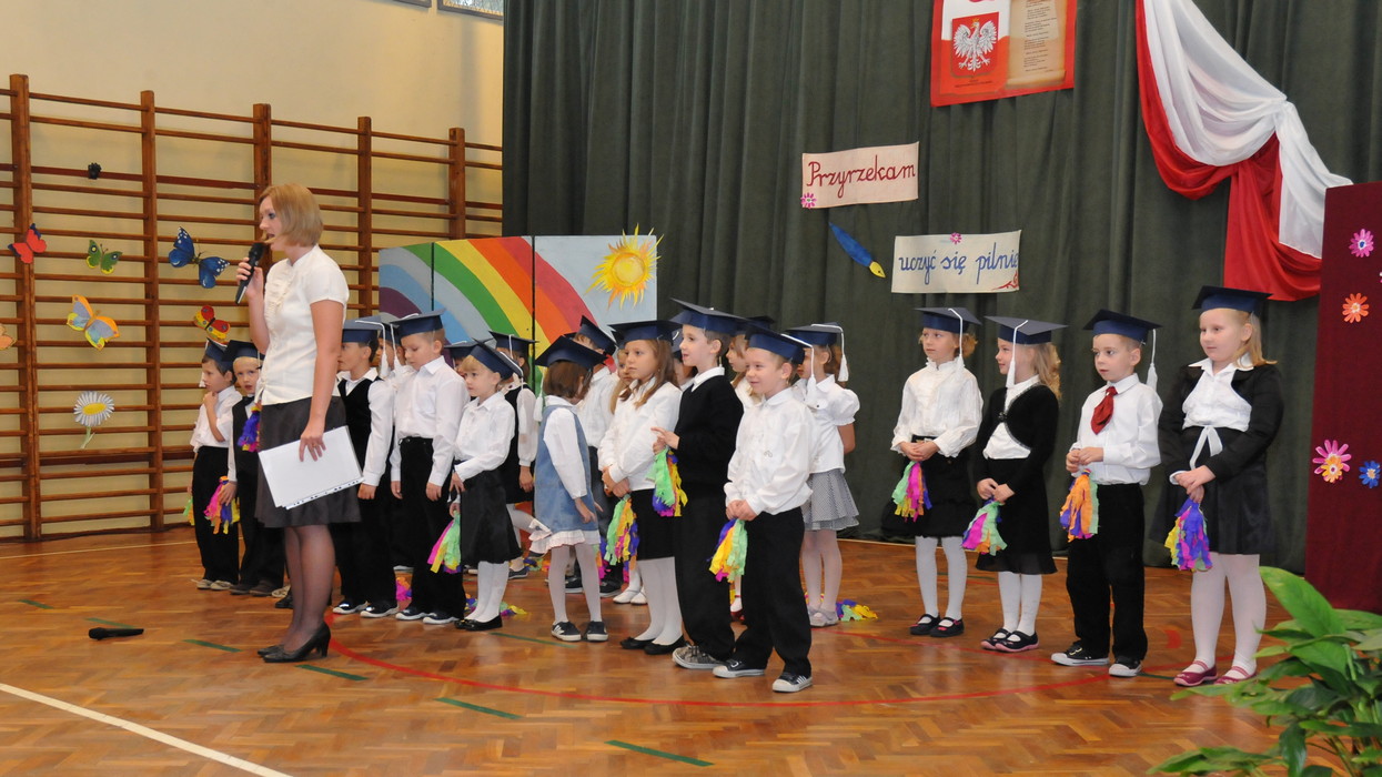 Środa 14 października 2009 roku była ważnym dniem dla naszych pierwszaków. Zaraz po zakończeniu uroczystej akademii z okazji Dnia Edukacji Narodowej odbyło się ich ślubowanie. Uczniowie klasy I przygotowali wraz ze swoją wychowawczynią p. Moniką Kacprzak specjalny program artystyczny. Na uroczystość ślubowania przybył specjalny gość - Zastępca Prezydenta Miasta Częstochowy p. Jacek Betnarski. Oczywiście obecne było całe grono nauczycielskie z p. Dyrektor Beatą Bzdon na czele, rodzice i opiekunowie uczniów klasy I oraz uczniowie wszystkich klas.