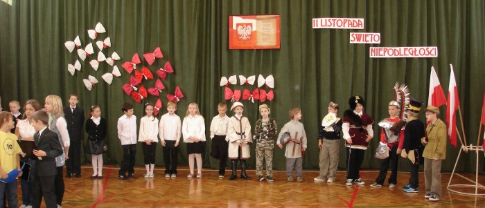 Dnia 10 listopada 2010 uroczystą akademią uczciliśmy 92 rocznicę odzyskania niepodległości. Specjalny program przygotowała klasa III pod kierunkiem wychowawcy p. Małgorzaty Stępień.