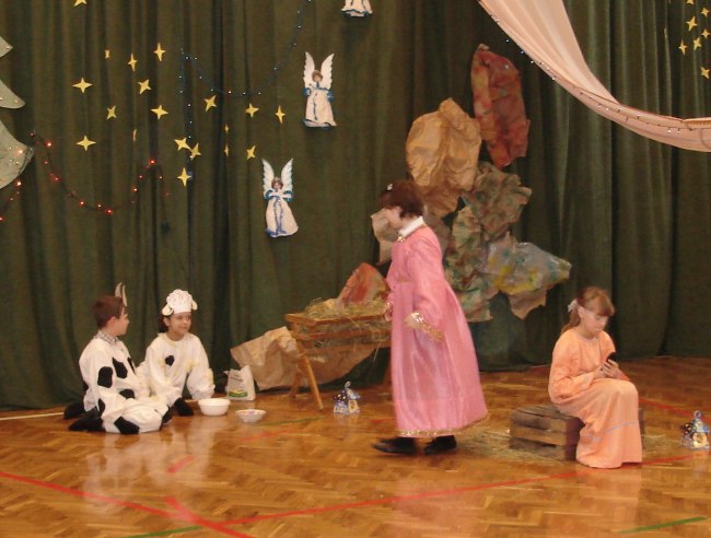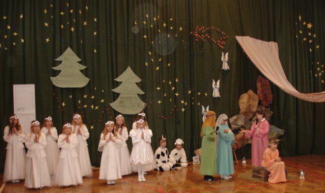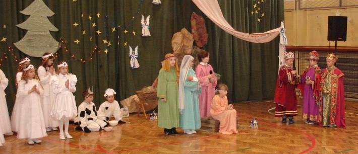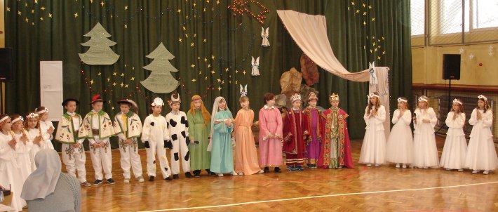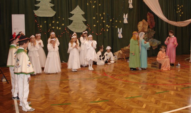 22 grudnia 2010 roku, tradycyjnie, jak co roku w naszej szkole, przed Świętami Bożego Narodzenia w klasach odbyły się spotkania opłatkowe z wychowawcami. Potem spotkaliśmy się wszyscy na przedstawieniu jasełkowym przygotowanym przez s. Krystynę Żebrowską i uczniów z klas I - IV.