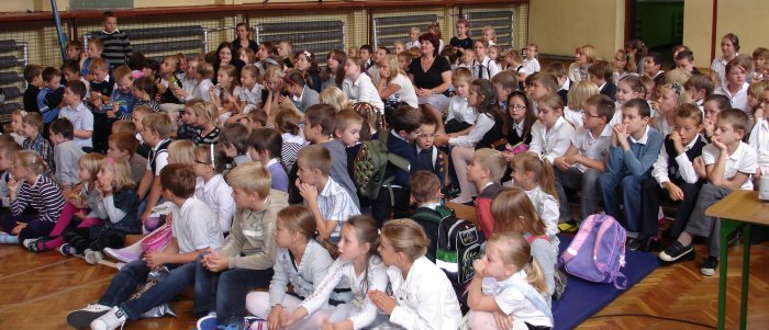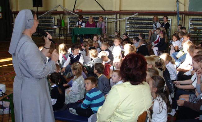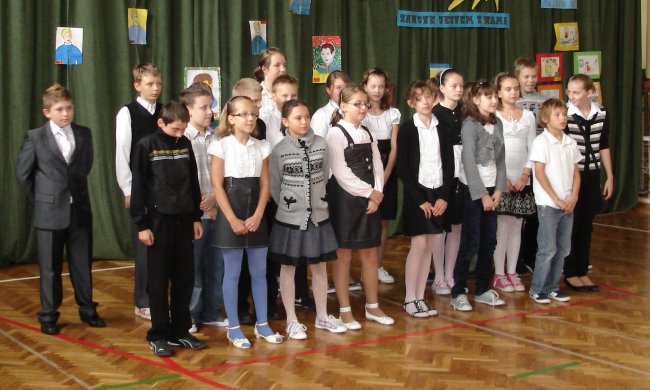 Świętowanie rozpoczęliśmy mszą świętą w kościele parafialnym pod wezwaniem św. Judy Tadeusza. Po przyjściu do szkoły, o godz. 10-tej obejrzeliśmy prezentację multimedialną o życiu św. Stanisława Kostki. Informacje z prezentacji przydały się uczestnikom konkursu o św. Stanisławie, który wnet się rozpoczął. Wzięły w nim udział reprezentacje klas III-VI. Pytania były bardzo trudne ale uczestnicy, ku zaskoczeniu wszystkich, doskonale odpowiadali. Rywalizację wygrała klasa VI. Zwycięzcy i uczestnicy konkursu otrzymali nagrody i drobne upominki.