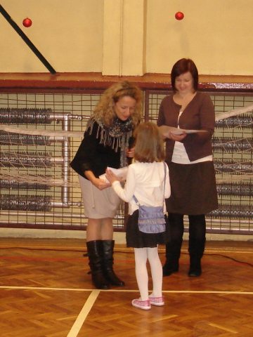 Po przedstawieniu Dyrektor szkoły p. Beata Bzdon wręczyła dyplomy klasom, które wykonały najładniejsze stroiki świąteczne w konkursie "Najpiękniejszy stroik Bożonarodzeniowy". A oto wyniki: