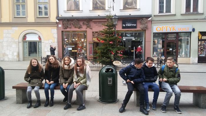Pierwszym punktem naszej wycieczki był spacer po Krakowie. Mieliśmy okazję zobaczyć na rynku jarmark bożonarodzeniowy, podegustować wyroby cukiernicze w "Fabryce cukierków". Udaliśmy się również z przewodnikiem w okolice Wawelu. Następnym punktem wycieczki był obiad, a później punkt docelowy Fabryka bombek. Dzieci poznały technologię produkcji bombek, uczestnicząc w warsztatach. Same też ozdobiły swoją bombkę. Pięknie opakowane bombki dzieci otrzymały po przyjeździe do Częstochowy.