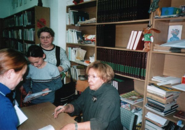 Niestety tylko nieliczni uczniowie naszej szkoły mieli możliwość i szczęście uczestniczyć w niezwykłym spotkaniu z p. Wandą Chotomską - najpopularniejszą polską współczesną autorką wierszy dla dzieci, dziennikarką, prozaikiem, dramaturgiem, scenarzystką, autorką piosenek, która napisała około 60 książek. Odbyło się ono 29.11.2004 roku w Miejskiej Bibliotece Publicznej Filia na Zawodziu. Wśród uczestników wzbudziło wiele pozytywnych emocji.