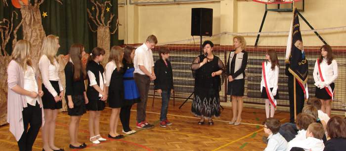 Po zakończeniu części artystycznej Dyrektor Zespołu p. Maria Kowol wręczała uczniom odchodzącej klasy VI-tej świadectwa. Potem wyróżniający się uczniowie klas I-V otrzymali z rąk p. Dyrektor nagrody i wyróżnienia. Dyrekcja Zespołu wręczała także listy gratulacyjne rodzicom najlepszych uczniów oraz podziękowania rodzicom za pomoc naszej placówce.